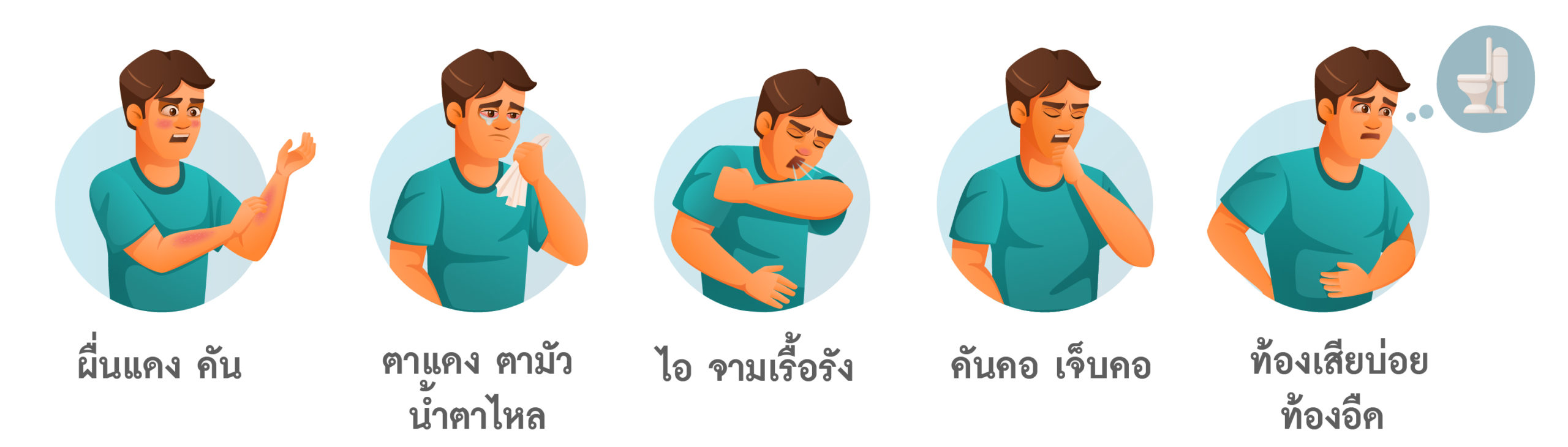 อาการจามบ่อยๆ น้ำมูกไหล ไอเรื้อรัง คันคอ เจ็บคอ คันๆ เกาๆ มีผื่นแดงขึ้นตามตัวหรือบริเวณต่างๆ เรื่องใกล้ตัวที่ควรใส่ใจ หากปล่อยให้เรื้อรังและอาการรุนแรงขึ้น อาจทำให้เสียบุคลิกภาพ เสียสุขภาพจิต เสียสมาธิ และส่งผลกระทบต่อการทำงานหรือการใช้ชีวิตประจำวันได้ไม่มากก็น้อย รู้และเข้าใจโรคภูมิแพ้ เพื่อการรักษาและดูแลอย่างถูกต้อง